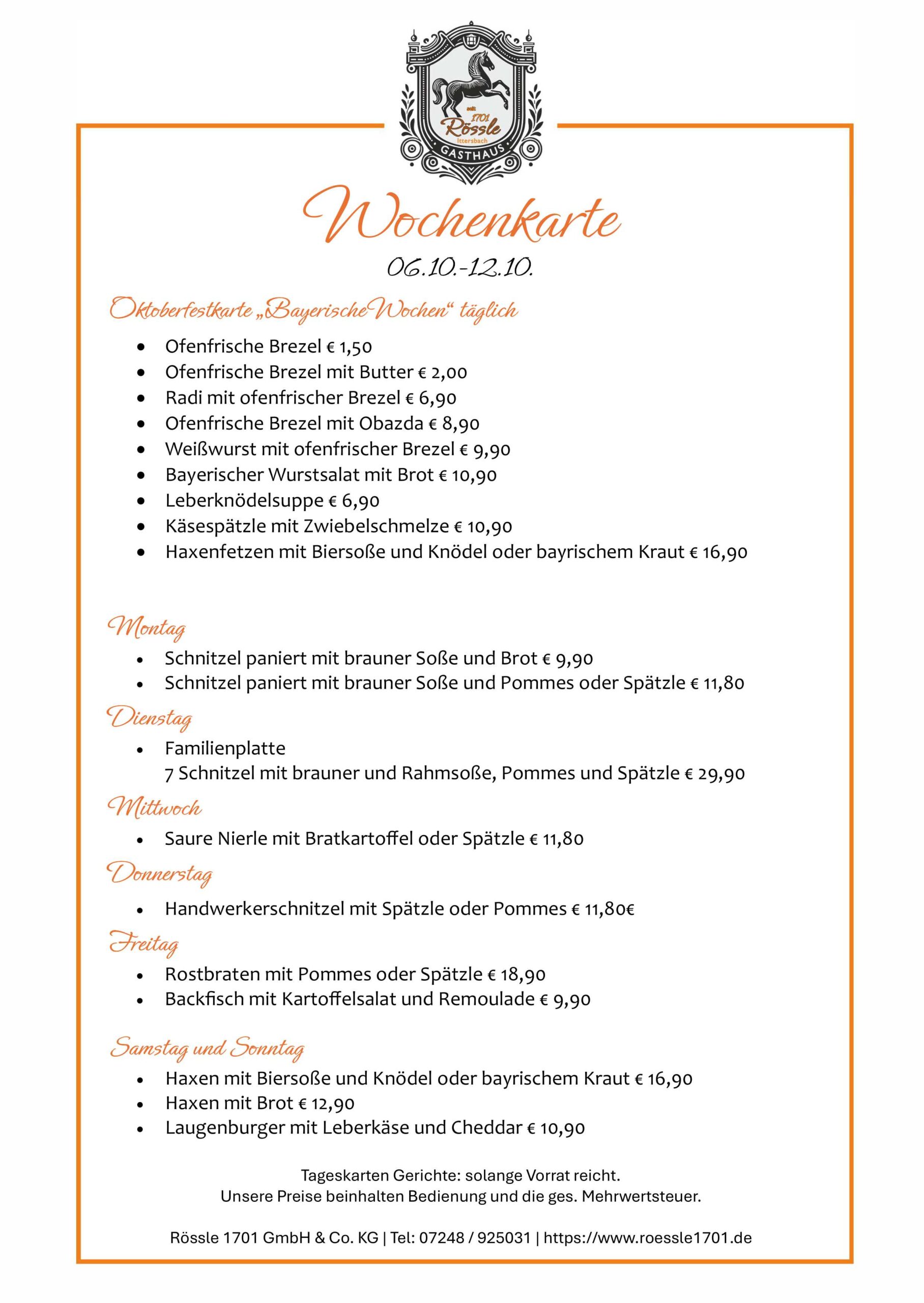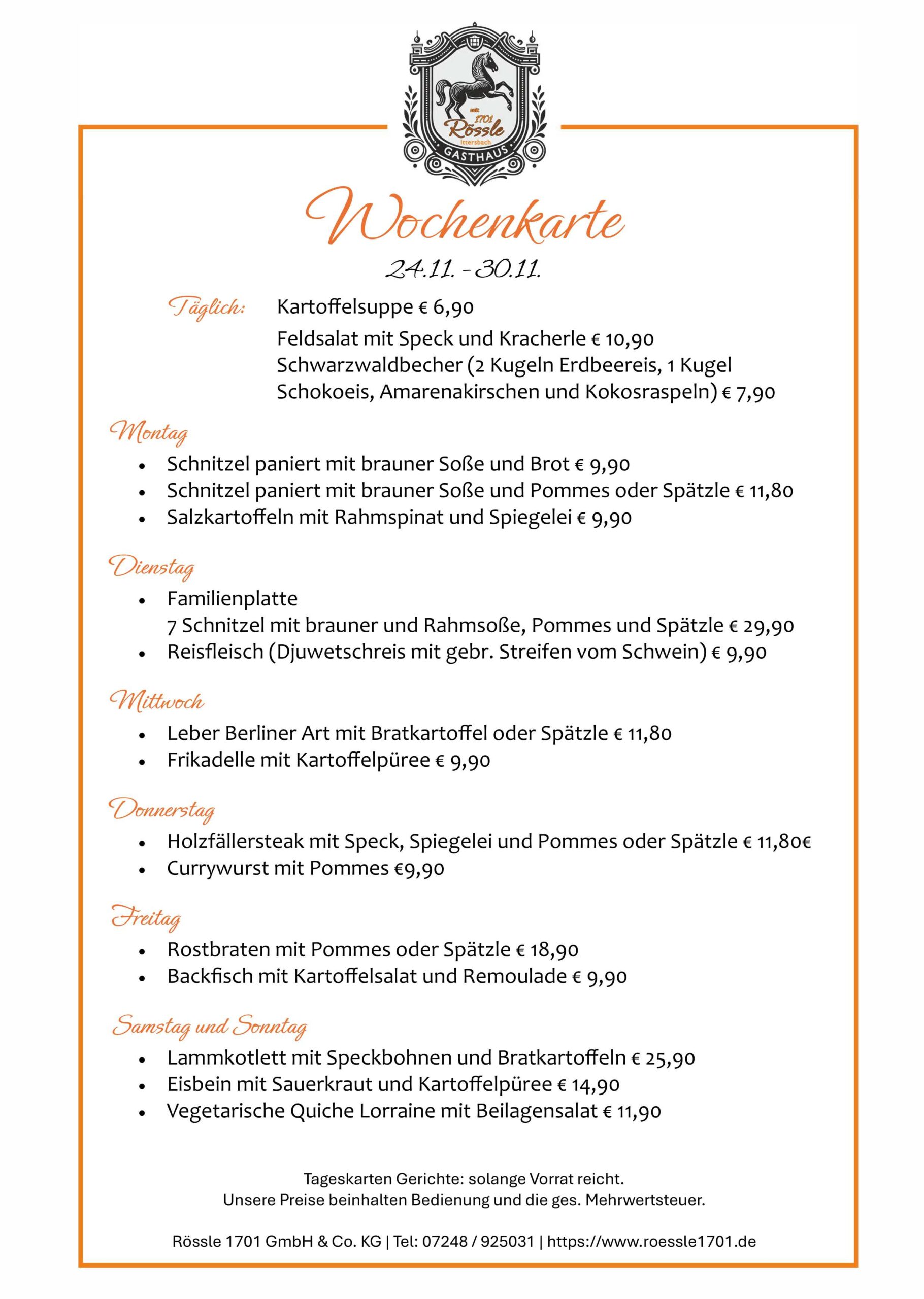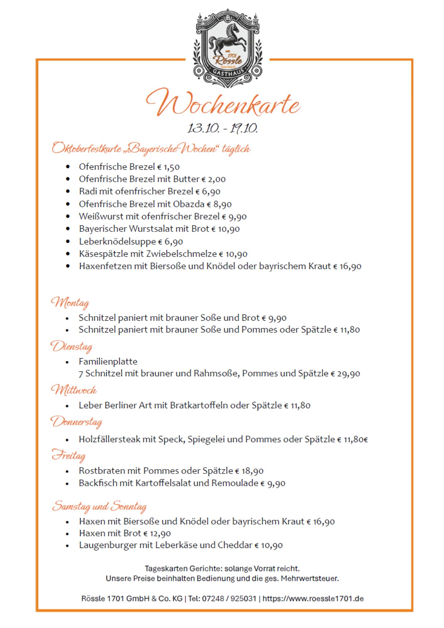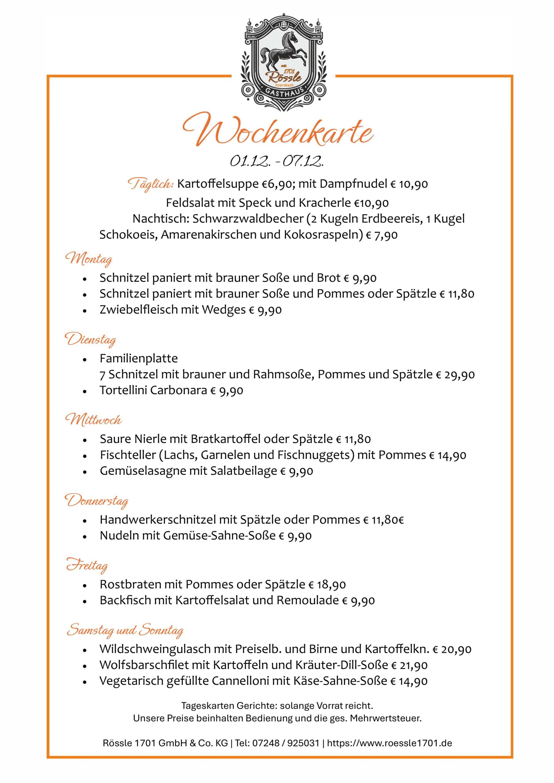 Hier finden Sie unsere aktuelle Wochenkarte mit täglich frisch zubereiteten Gerichten.